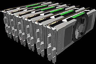 NVIDIA™ CUDA ist eine Technologie, mit der sich beliebige Rechenaufgaben auf beliebig viele Grafikkarten aufteilen lässt. Im Z-Rig haben z. B. sechs NVIDIA™ Tesla oder 6 NVIDIA™ Titan Z Platz, das sind 12 GPU-Cores! Die entsprechenden GPU-Riser sind bereits enthalten.